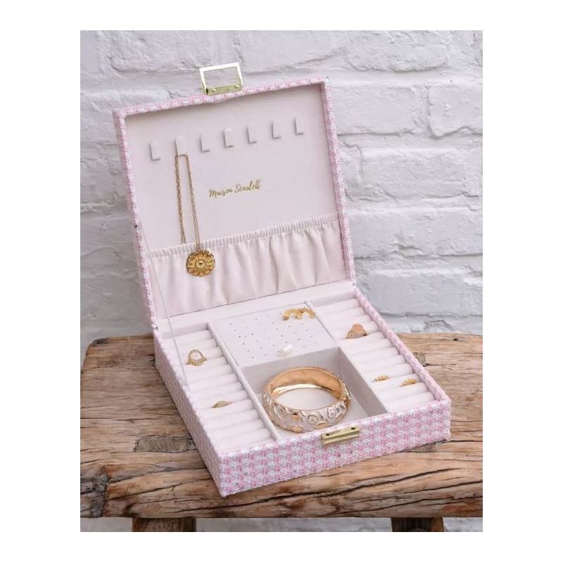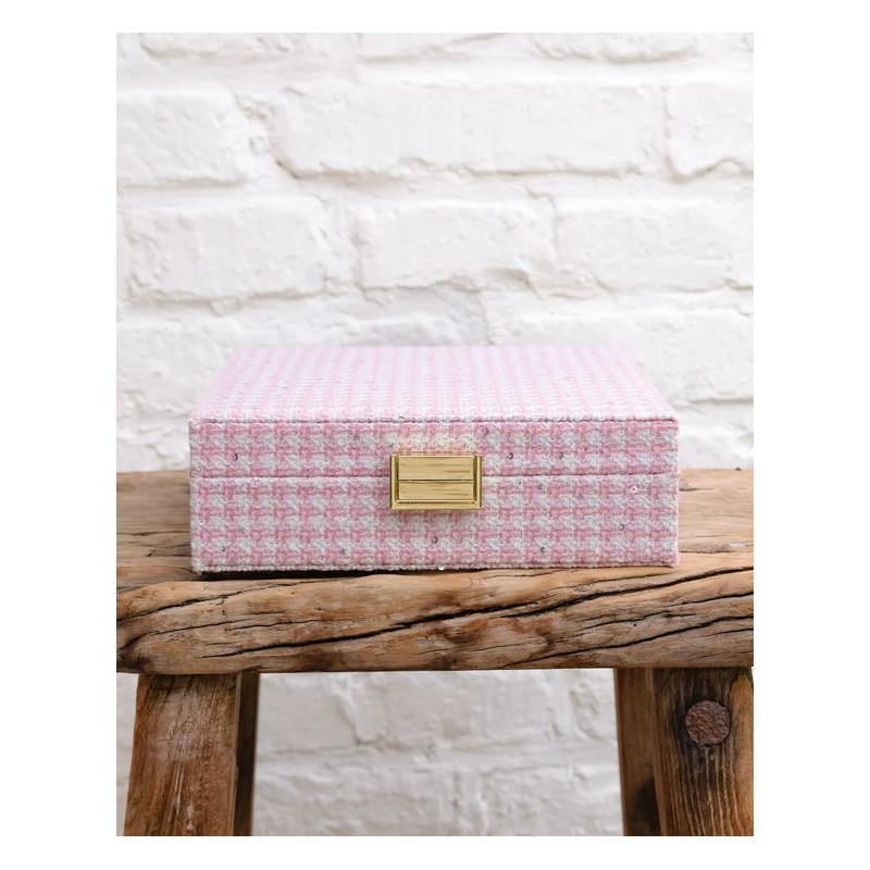 COFFRET A BIJOUX ANNE PIED DE POULE ROSE