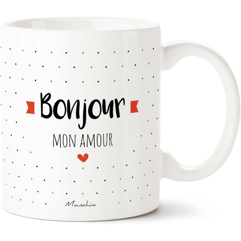 Ce mug d’amour est un petit mot doux à lui seul, mieux qu’un gros cadeau, c’est la petite attention qui met de bonne humeur dès le matin. Le café est bien meilleur avec un peu plus d’amour alors essayez-le ! Diamètre : 8.00 cm Hauteur : 9.50 cm Contenance : 32 cl Mug en céramique Résistant au micro-ondes et au lave-vaisselle.