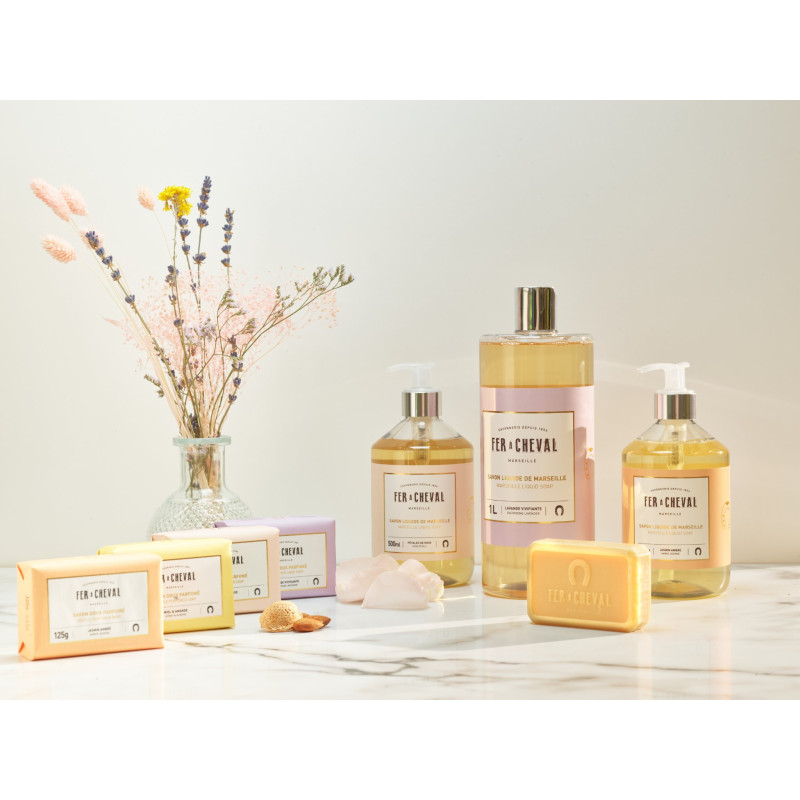 Le savon liquide de Marseille Thé Blanc & Yuzu est disponible en version familial 1L. Le Savon Liquide de Marseille Thé Blanc & Yuzu associe l’huile d’amande douce pour ses vertus apaisantes, à l’huile de coco pour offrir une mousse riche et onctueuse. Naturellement glycériné, ce savon surgras nettoie tout en douceur, et laisse sur la peau parfum subtil aux notes de thé blanc infusé au yuzu.