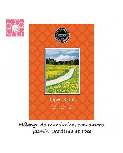 Le sachet Open Road allie des notes boisées et aromatiques, créant un parfum équilibré entre fraîcheur et chaleur. Il associe des accords de cèdre et de santal, relevés par une touche de lavande et d’agrumes un doux mélange de Mandarine, Concombre, Jasmin, Gardénia & Rose pour une senteur à la fois tonique et réconfortante. Ce mélange unique transporte instantanément votre esprit vers des paysages lointains et des aventures inoubliables.