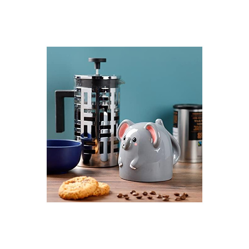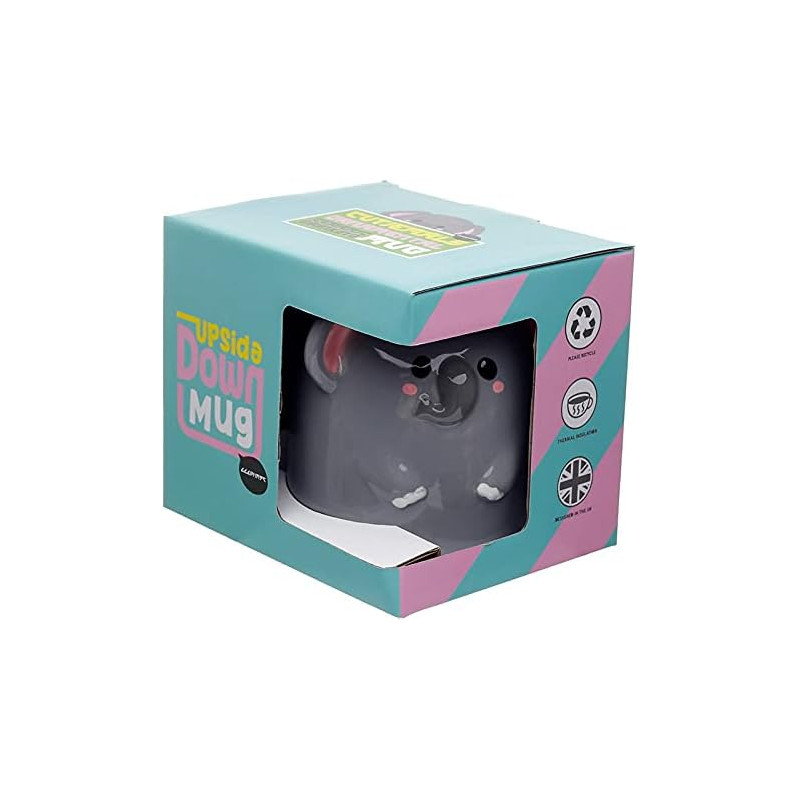 Mug Retournable Tête en Bas Éléphant - Fiche Technique: Composition: Céramique dolomie Peut contenir des aliments: Oui Utilisable au Micro-ondes: Non Utilisable au Lave-vaisselle: Non Capacité: 500ml