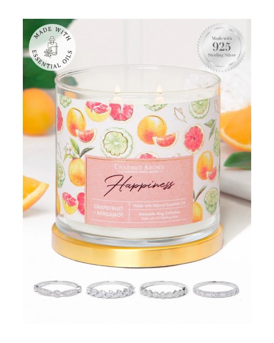 Pourtant, ce qui rend la bougie "Happiness" de Charmed Aroma vraiment spéciale, c'est ce qui se cache à l'intérieur. Comme un trésor caché au fond du cœur, une fois la cire fondue, un petit paquet se dévoile, renfermant un bijou étincelant. C'est comme si chaque bougie était un rappel que le bonheur réside souvent dans les choses les plus simples, et que chaque jour est une nouvelle occasion de célébrer la vie et ses merveilles.