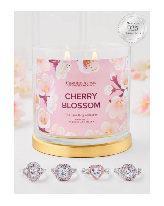 Comme toutes les bougies de Charmed Aroma, la Cherry Blossom cache une surprise spéciale : un bijou caché à l’intérieur. À mesure que la cire fond, un magnifique bijou en argent sterling apparaît, qu'il s'agisse d'une bague, d’un collier ou de boucles d'oreilles. Cette découverte ajoute une dimension ludique et excitante à votre expérience, faisant de cette bougie un cadeau parfait ou un petit plaisir à s’offrir.