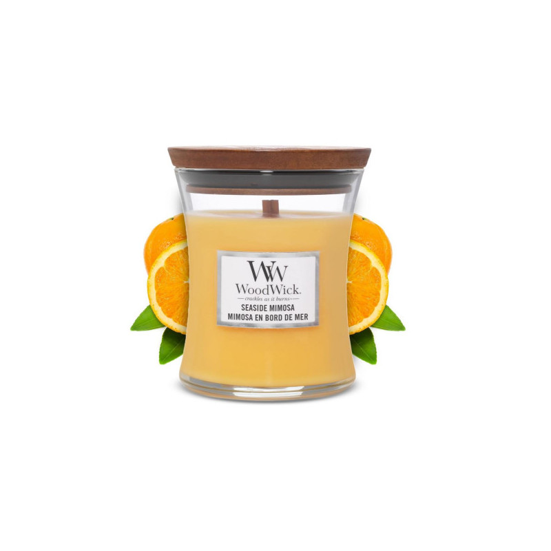 Le parfum de la bougie "Mimosa en Bord de Mer" de WoodWick évoque une escapade ensoleillée le long des côtes sauvages, où la brise marine se mêle aux arômes enivrants des fleurs de mimosa. C'est une invitation à un voyage sensoriel où chaque bouffée de parfum transporte vers un rivage baigné de soleil, où les vagues caressent doucement le sable doré et où les fleurs exotiques embaument l'air.