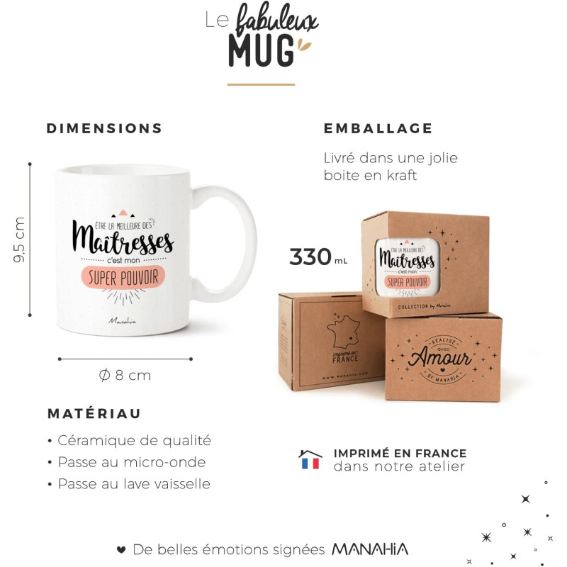 Diamètre : 8.00 cm Hauteur : 9.50 cm Contenance : 32 cl Mug en céramique, imprimé avec amour en France. Résistant au micro-ondes et au lave-vaisselle.