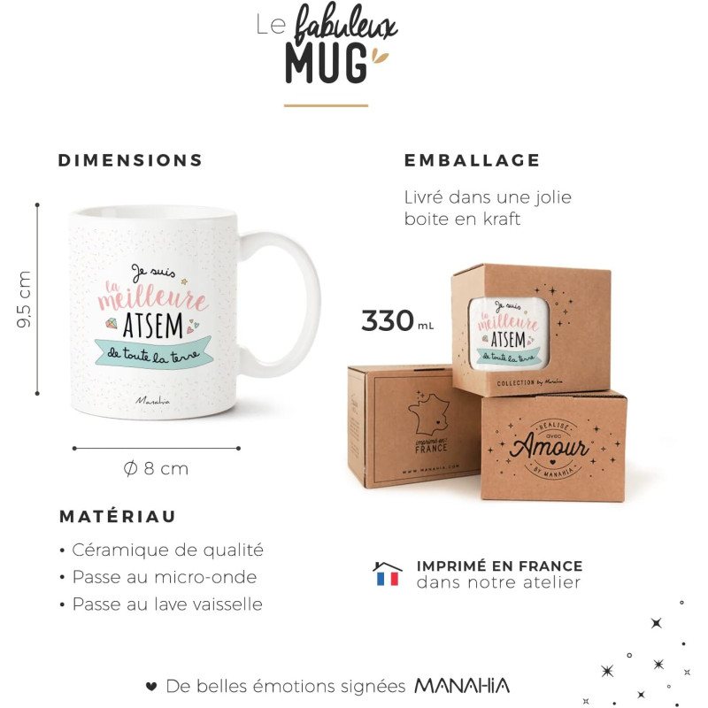 Ce mug est le cadeau idéal à offrir à l'ATSEM de votre enfant. Un petit message pour lui rappeler quotidiennement que c'est la meilleure ATSEM.