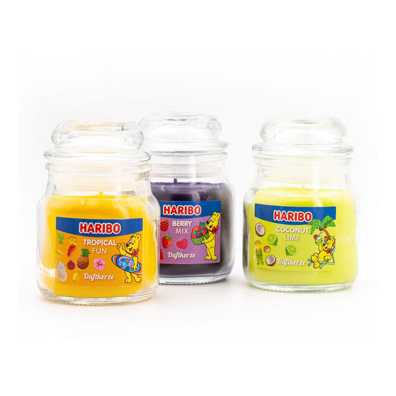 Set de 3 petites bougies Haribo - Berry Mix, Coconut Lime, Tropical Fun - 3 x 85g