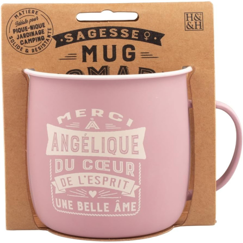 Découvrez le mug nomade, une tasse large en mélamine alimentaire déclinée dans de jolies couleurs pastel. Une matière douce et résistante, parfaite pour les escapades dans les bois, au camping ou pour une pause réconfortante dans le jardin. Chaque mug possède un petit mantra tendre et un prénom (parmi plus de 120) pour que chaque mug soit unique. Laver avant utilisation - Passe au lave-vaisselle - Ne passe pas au micro-ondes..Contenance 400 ml