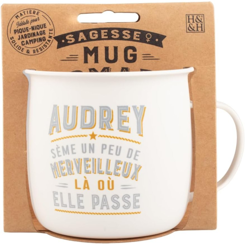 Découvrez le mug nomade, une tasse large en mélamine alimentaire déclinée dans de jolies couleurs pastel. Une matière douce et résistante, parfaite pour les escapades dans les bois, au camping ou pour une pause réconfortante dans le jardin. Chaque mug possède un petit mantra tendre et un prénom (parmi plus de 120) pour que chaque mug soit unique. Laver avant utilisation - Passe au lave-vaisselle - Ne passe pas au micro-ondes..Contenance 400 ml