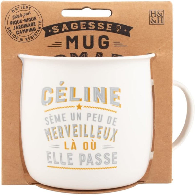 Découvrez le mug nomade, une tasse large en mélamine alimentaire déclinée dans de jolies couleurs pastel. Une matière douce et résistante, parfaite pour les escapades dans les bois, au camping ou pour une pause réconfortante dans le jardin. Chaque mug possède un petit mantra tendre et un prénom (parmi plus de 120) pour que chaque mug soit unique. Laver avant utilisation - Passe au lave-vaisselle - Ne passe pas au micro-ondes..Contenance 400 ml