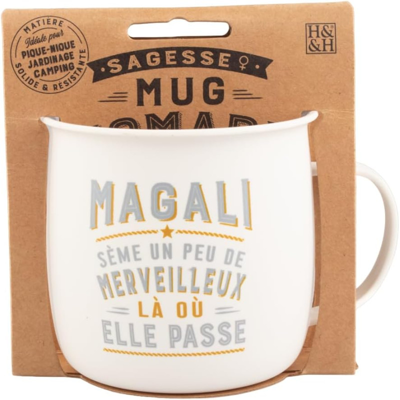 Découvrez le mug nomade, une tasse large en mélamine alimentaire déclinée dans de jolies couleurs pastel. Une matière douce et résistante, parfaite pour les escapades dans les bois, au camping ou pour une pause réconfortante dans le jardin. Chaque mug possède un petit mantra tendre et un prénom (parmi plus de 120) pour que chaque mug soit unique. Laver avant utilisation - Passe au lave-vaisselle - Ne passe pas au micro-ondes..Contenance 400 ml