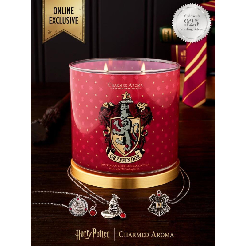 Pourtant, ce qui rend la bougie "Gryffindor" de Charmed Aroma vraiment magique, c'est ce qui se cache à l'intérieur. Comme un secret bien gardé dans les cachots de Poudlard, une fois la cire fondue, un petit paquet se dévoile, renfermant un bijou mystérieux. C'est comme si chaque bougie contenait un objet précieux lié à l'héritage de Gryffondor, rappelant le courage et la détermination nécessaires pour affronter les ténèbres.