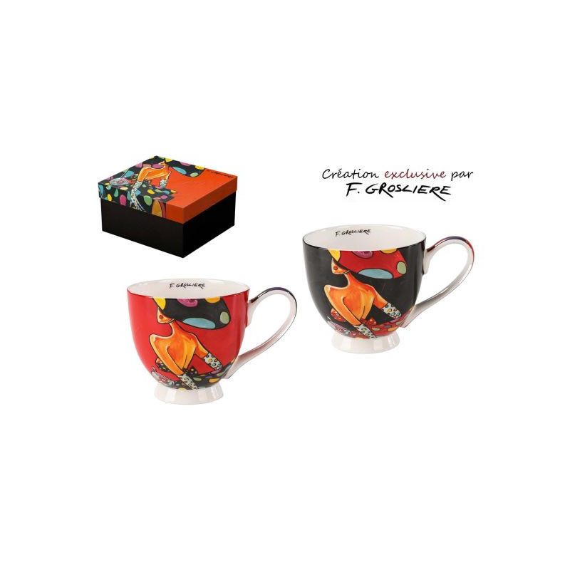 COFFRET 2 DEJEUNERS 500ML LA FEMME A POIS PAR F. GROSLIERE Matière : Porcelaine