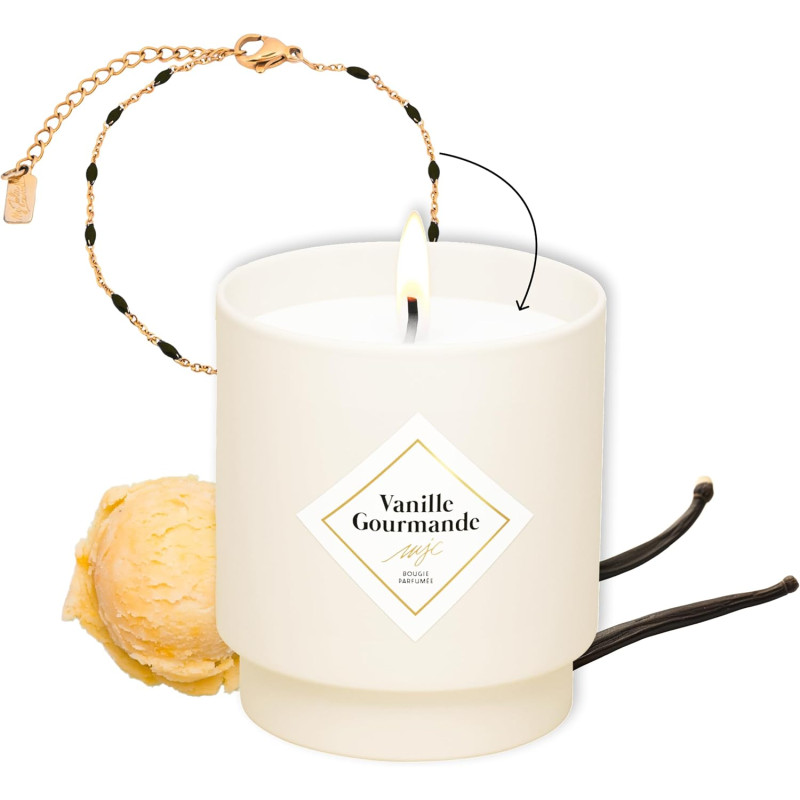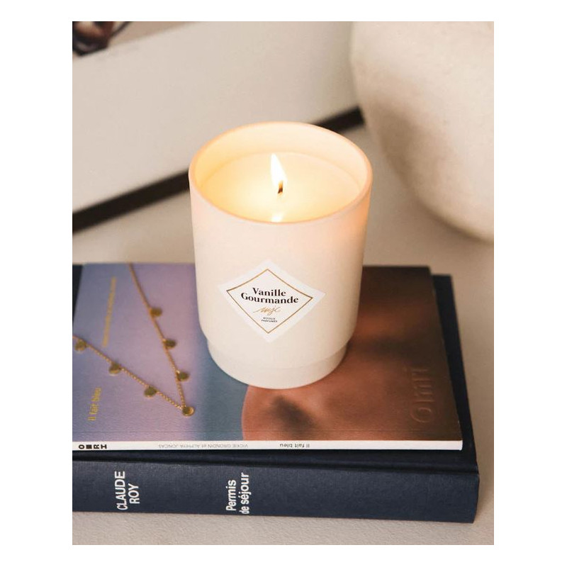 Les notes suaves de la "Vanille Gourmande" dansent dans l'air, évoquant l'image d'une pâtisserie délicieusement parfumée. La vanille, riche et veloutée, se marie à des accords gourmands, créant une symphonie olfactive qui éveille les papilles imaginaires. La bougie devient ainsi une fenêtre olfactive ouverte sur l'univers délicieux des saveurs sucrées.