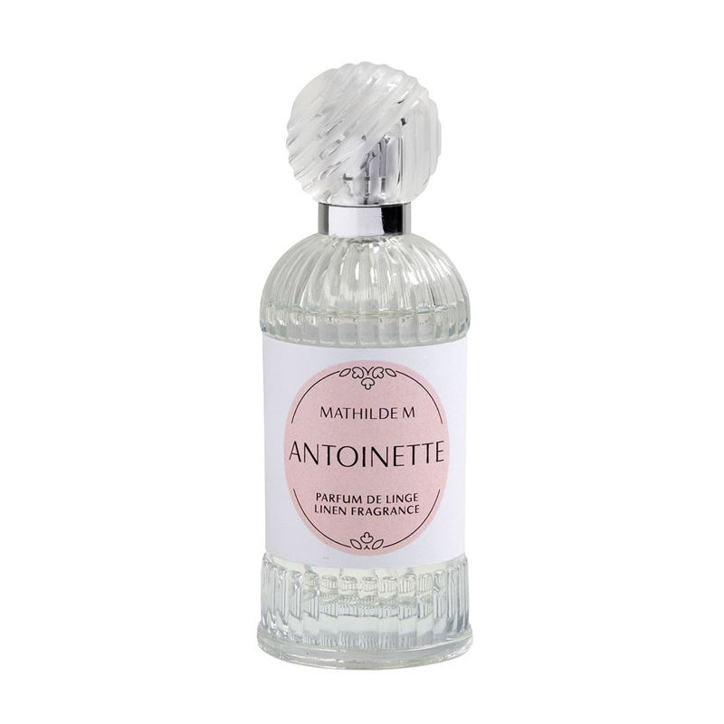 Découvrez le parfum Antoinette, une gourmandise florale qui signe la rencontre entre le miel et un bouquet de jasmin et fleur d'oranger. Une senteur addictive, délicatement sucrée et exquisement fleurie. Véritable objet de décoration, ce parfum de linge Les Intemporelles parfume délicatement votre linge et tous vos textiles sans les tacher. Faiblement dosée en alcool, sa formule a été spécialement conçue pour respecter tous les tissus (draps, oreillers, rideaux, canapé ou vêtements). Dans son flacon en verre côtelé orné d'un bouchon inspiré de la parfumerie de corps, il crée en quelques gestes un voile de douceur parfumé.