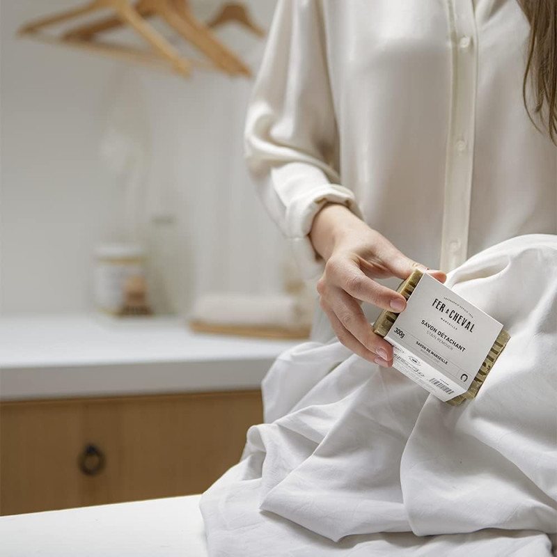 Ce savon détachant est fabriqué au Savon de Marseille Fer à Cheval reconnu pour son efficacité détachante légendaire. Il a été spécialement conçu pour une parfaite prise en main renforçant l'efficacité détachante.