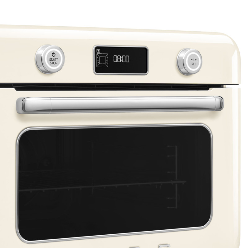 Le mini four SMEG 30L crème allie design rétro doux et performance professionnelle. Compact et puissant, il cuit pizzas, gâteaux et plats variés avec précision. Pratique et élégant, il apporte chaleur et charme vintage à votre cuisine moderne.