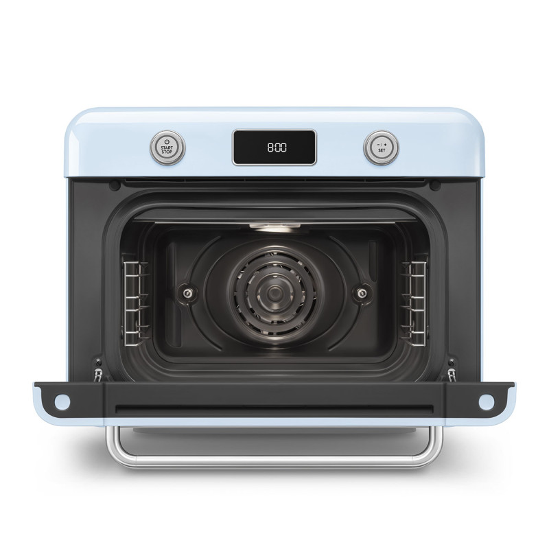 Le mini four SMEG 30L bleu allie design rétro doux et performance professionnelle. Compact et puissant, il cuit pizzas, gâteaux et plats variés avec précision. Pratique et élégant, il apporte chaleur et charme vintage à votre cuisine moderne.