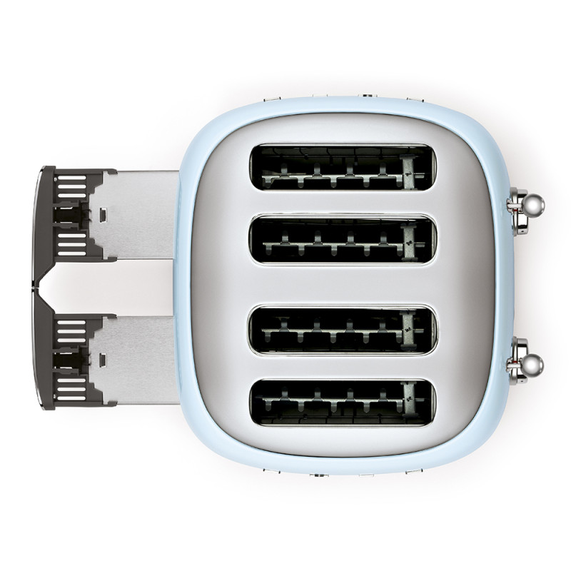 Le grille-pain bleu SMEG 4 tranches combine design rétro et performance. Parfait pour griller pain, bagels ou brioches en quelques minutes. Sa couleur tendance et son style vintage apportent une touche élégante à votre cuisine.