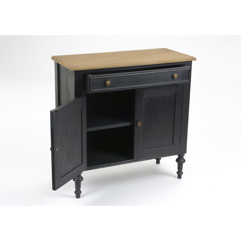 Buffet 1 tiroir de la gamme New Legende signé Amadeus, combinant MDF et bois massif pour un meuble robuste et esthétique. Ses dimensions compactes (105x35x80 cm) facilitent son intégration dans divers espaces. Son design classique avec finition noire et plateau bois naturel valorise les catalogues et séduit une clientèle recherchant un meuble de rangement fonctionnel et élégant.
