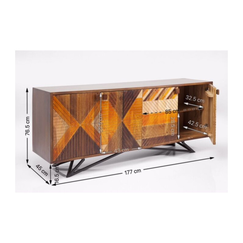 Un beau en bois massif buffet de style ethnique qui s'harmonise particulièrement bien avec un beau parquet .