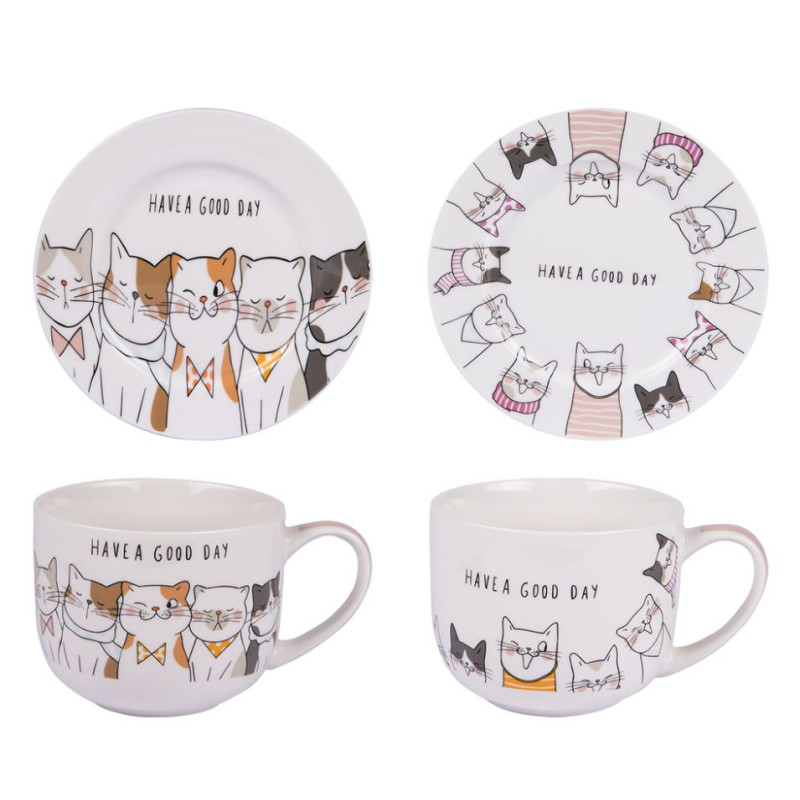 Notre collection d'Art de la table THE OU CAFE est le cadeau idéal. Ces deux tasses de 250 ml font honneur aux chats. Coffret cadeau qui comprend deux tasses et sous-tasses en porcelaine. Micro-ondes et lave-vaisselle possibles.