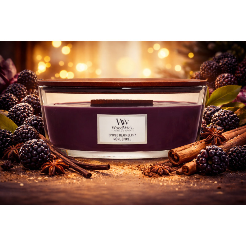 Grâce à sa longue durée de combustion, la bougie WoodWick Ellipse Mûre Épicée accompagne durablement vos instants de bien-être. Elle est idéale pour créer une ambiance conviviale, réchauffer les soirées ou offrir un cadeau raffiné à tous les amateurs de senteurs gourmandes et sophistiquées.