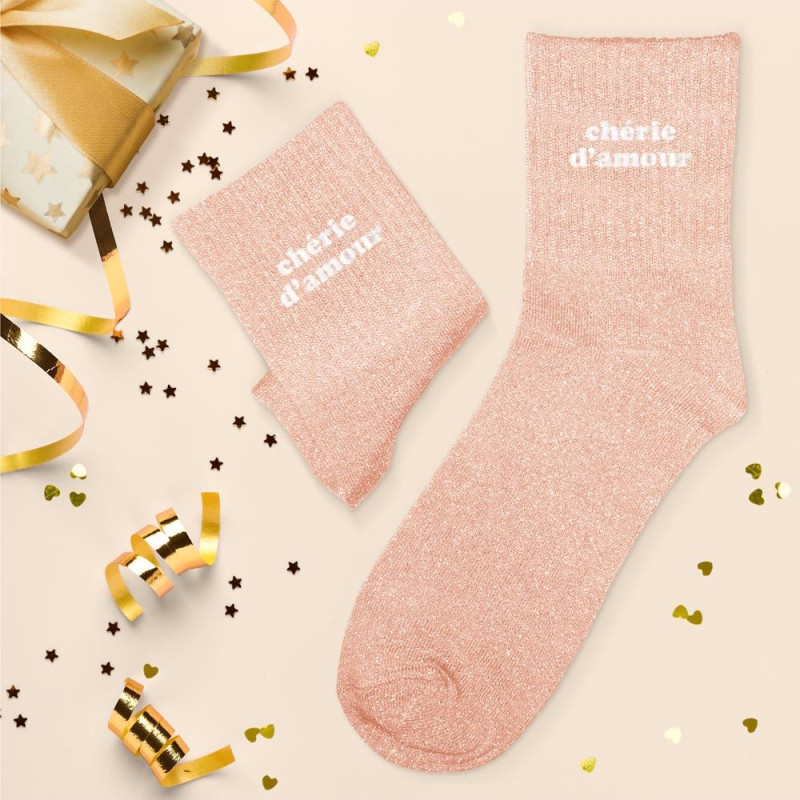 paire de chaussettes a paillettes "Chérie d'Amour". Ces chaussettes sont
