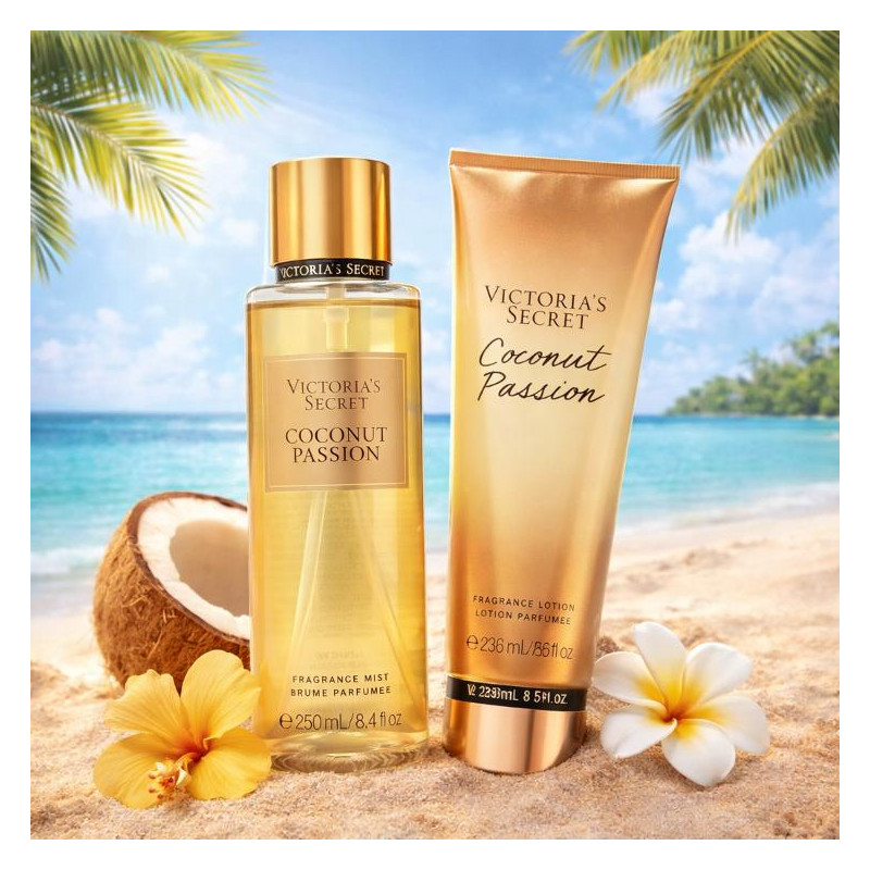 Le duo Coconut Passion combine brume et lait corporel pour une peau douce et délicieusement parfumée aux notes exotiques de coco et vanille. Un rituel gourmand pour tous les jours.