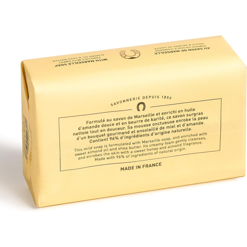 Notre savonnette Miel & Amande convient à tous les types de peau. Sa mousse onctueuse parfume délicatement la peau d’un bouquet gourmant et ensoleillé de miel et d’amande douce. Fabriqué avec notre savon de Marseille végétal, du beurrre de karité de l'huile d'amande douce, ce savon surgras conviendra à toute la famille.