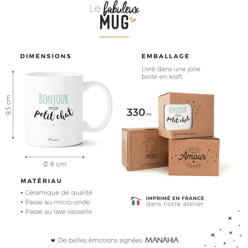 Diamètre : 8.00 cm Hauteur : 9.50 cm Contenance : 32 cl Mug en céramique, imprimé avec amour en France. Résistant au micro-ondes et au lave-vaisselle.