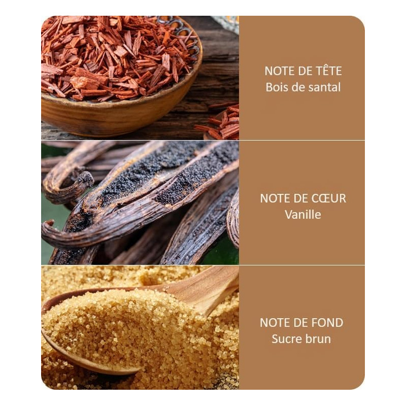 Une base épicée de bois de santal renforcée de douces notes florales et d’un soupçon de vanille pour un parfum enveloppant et séduisant. note de tête : fruits, noix de coco note de cœur : bois de santal, chocolat note de fond : balsamine, vanille
