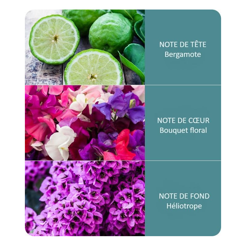 Délicate et merveilleusement légère, cette fragrance rafraichit vos sens grâce au parfum féminin et soyeux des pois de senteur. note de tête : bergamote note de cœur : jasmin note de fond : musc